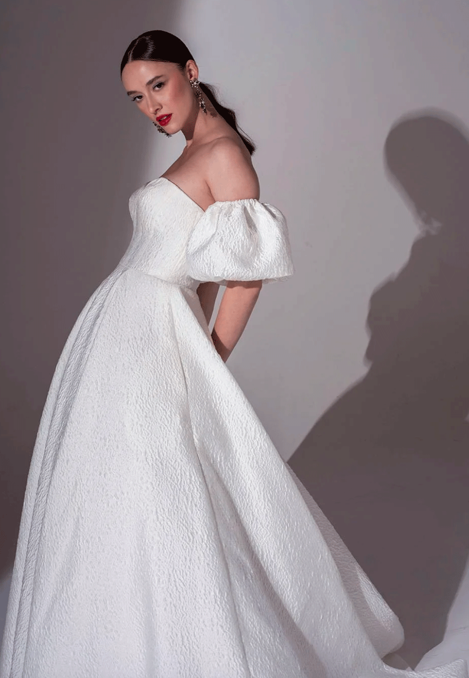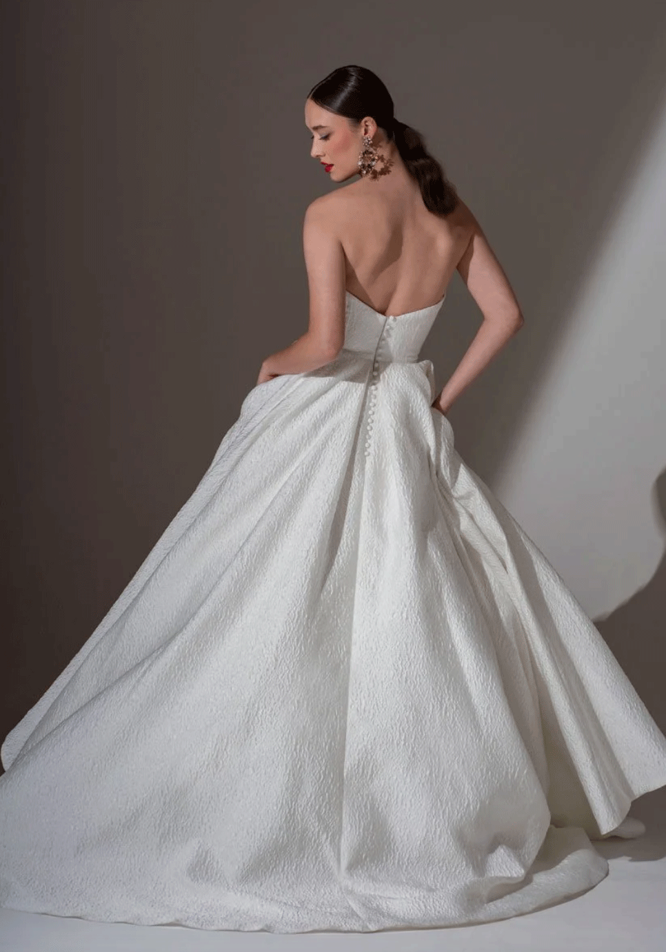 Freda Bennet FB120 ‘Tyler’ Beautiful French Cloqué Aline wedding dress with strapless sweetheart neckline bodice