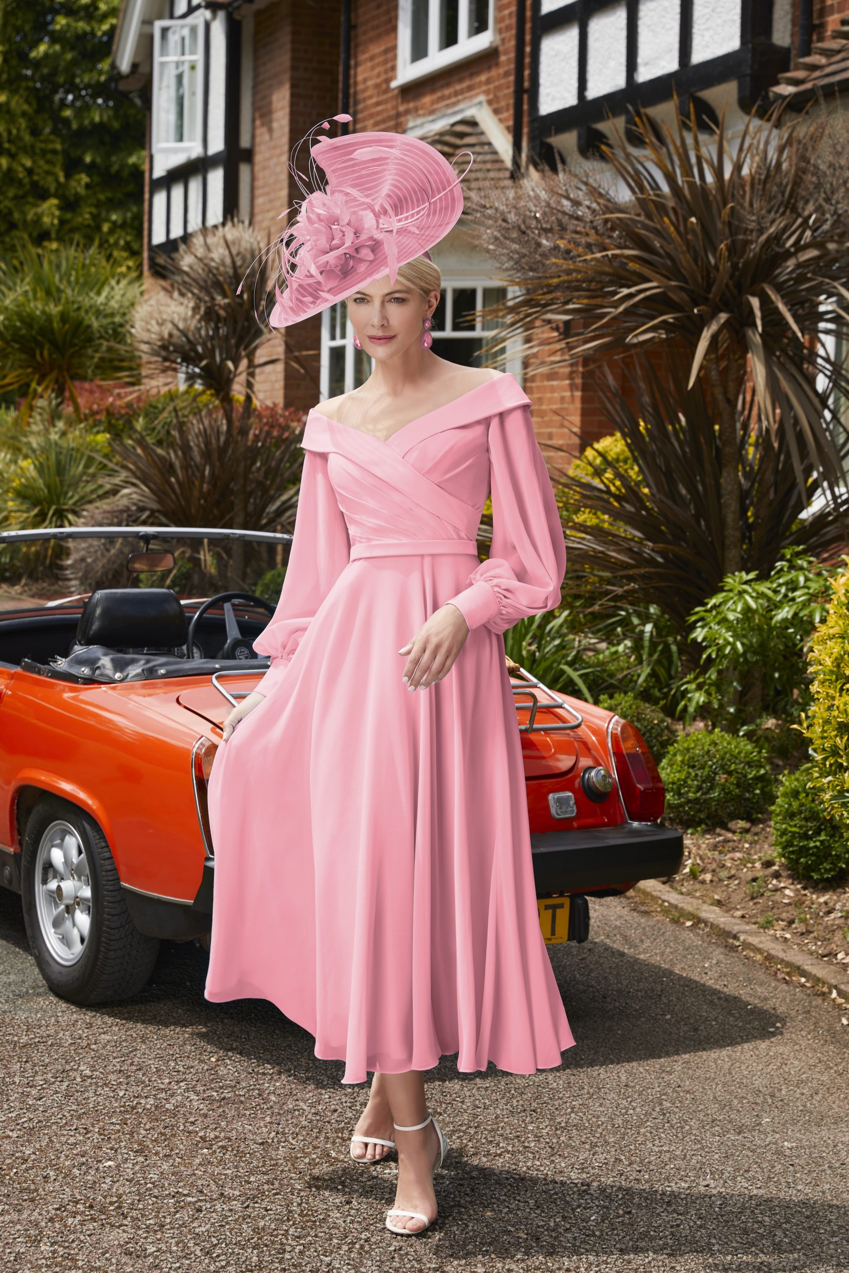 Veni Infantino 29677 – Coral off the shoulder occasion dress with sleeves